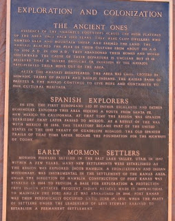 Ok, this is the Levi Stewart Memorial in Kanab, Utah. History in the area began with Jacob Hamblin, who negotiated with local Indians about Mormon settlements. On Aug 4, 1857, LDS President Brigham Young appointed Hamblin president of the Santa Clara Indian Mission, which he used to conduct negotiations with the Paiute, Moquis, and Navajo. He also assisted Major Powell's exbedition of the area in 1869-72. Two attempts at settling the area failed prior to 1870 when Levi Stewart led a group of pioneers from Pipe Spring, AZ. Fort Kanab, a local word for a willow basket used to carry an infant, had been established a year before by Hamblin. The town of Kanab was organized on Sep 11, 1870. But on dec 14, the fort caught fire, killing Levi's wife Margery and five sons. The pioneers did not give up, though, and the settlement continued. As early as 1922, Hollywood directors found the areas scenery perfect for Western movies, and before long, the town became a hub for tourists visiting nearby, Zion, Bryce, and Grand Canyons.